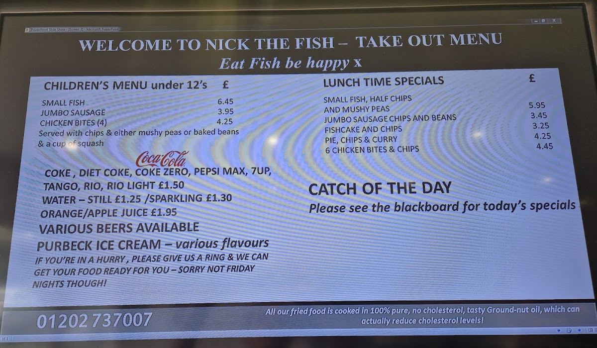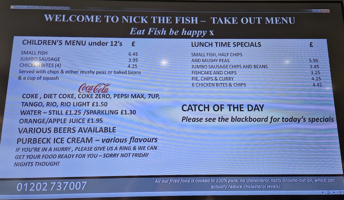 Refresh yourself with a selection of drinks, including soft drinks and Purbeck ice cream, rounding off your meal perfectly. With rave reviews from customers celebrating the flaky fish, generous portions, and friendly service, it's clear that Nick the Fish isn't just another chippy—it’s an experience not to be missed!
